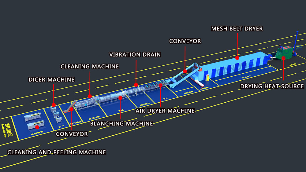 | The chili processing line can be equipped according to the user’s requirement and the production demands. | ||||