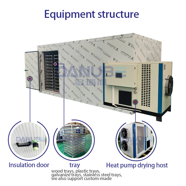 The fruit heat pump dryer can quickly remove the water in the fruit without affecting the original color, shape, and nutrient content of the fruit. The fruit drying oven is equipped with a computer control system, which can realize automatic temperature control. The drying temperature range of the heat pump dryer is 20-80°C, and the materials suitable for drying are very wide, such as grains, edible fungi, medicines, seafood, bacon, fruits and vegetables, tobacco leaves, seeds, spices, etc.