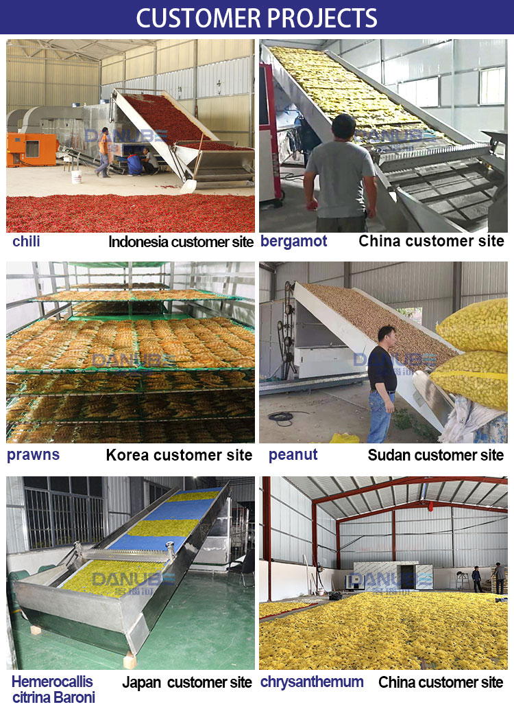 Ginger slice dryer: adopts multi-layer moving stainless steel mesh belt, automatic loading, and unloading, saving a lot of labor costs. Flexible heat source selection: Coal, wood chips, natural gas, diesel, propane, electricity, etc.