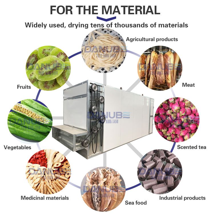 The mesh belt dryer machine is suitable for food series, fruit series, fruit series, pharmaceutical series, agricultural and sideline products of large-scale continuous dehydration drying. It is an ideal choice for large enterprises to dry fruits, fruits, flowers, leaves, meat, pet snacks, herbs, spices, nuts, seeds, and seafood.