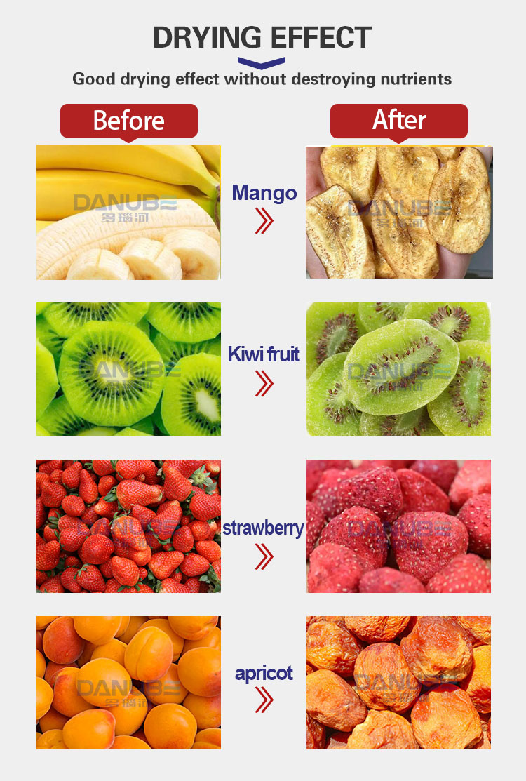 3. Clean and sanitation: The entire fruit drying process is completed in a closed box, free from external pollution.