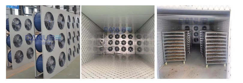 The drying chamber is used 100mm polyurethane insulation board, supporting 304 stainless steel trolleys and