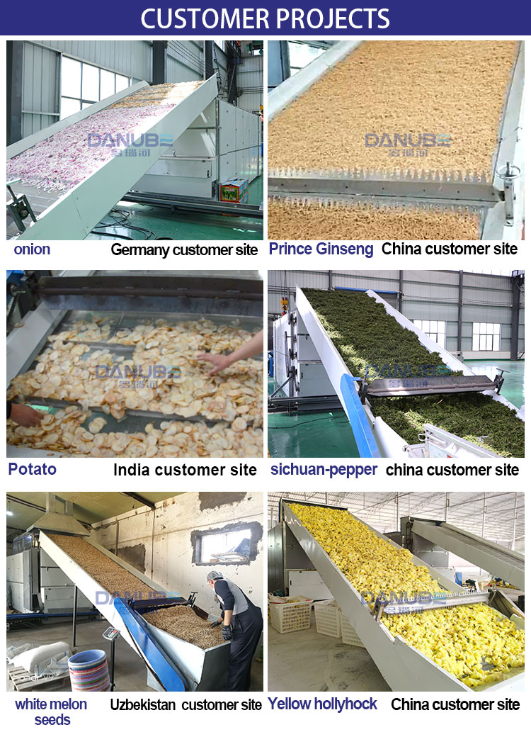 Multi-layer belt onion slice dryer: The dryer is the key equipment, which determines the effect and quality of onion slices after processing. Using our mesh belt type onion slice dryer, with an intelligent control system, can make onion slices The drying is always maintained in a reasonable drying environment to ensure the effect of the finished product. The use of this onion slice dryer has the advantages of large processing output, high degree of automation, controllable drying effect and quality, and adjustable drying time. Flexible heat source selection: Coal, wood chips, natural gas, diesel, propane, electricity, etc.